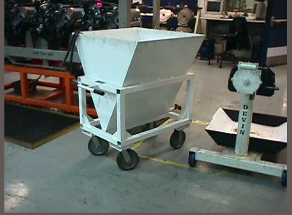 Mobile oil and coolant drain cart fitted with valve for draining into sump.