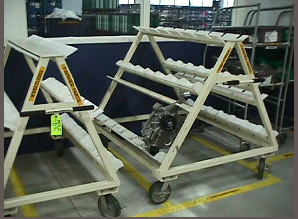 Engine front cover assembly storage carts.