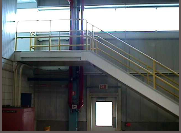 Stair with handrail and landing.