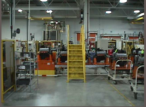 Enclosed up and over engine crossover stairs to keep debris from falling into production.