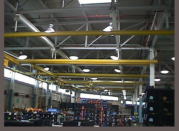 Multiple systems in repair area sharing common support steel. Runways have been set at different elevations for over/under bridges to overlap coverage area.