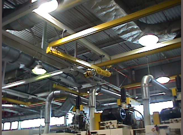 Header steel and cranes were designed to fit around existing mist collection, electrical lines and air lines to avoid additional relocation.
